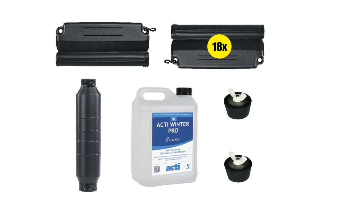 Artikelnummer: 1 x wintervloeistof 5 liter, 1 x gizzmo skimmerbeveiliging , 18 x winterdrijver, 2 x winterstop nr 10 (1 1/2'') Categorieën: ,