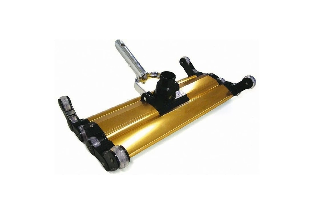 Deze bodemzuiger is kwalitatief en stevig. Het is gemaakt van aluminium. Dankzij dit ontwerp kan de bodemzuiger bij de moeilijkste plaatsen komen. Hij is flexibel dankzij de wieltjes en de losse elementen. Heeft een breedte van 45.7 centimeter. Het handvat heeft een 38mm aansluiting, dat is een standaard aansluiting voor universele telescoopstangen. Exclusief telescoopstang.