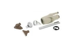 - Ook maakt het een verbinding met een standaard telescopische steel (niet meegeleverd) met een snelle loslaat V-clip